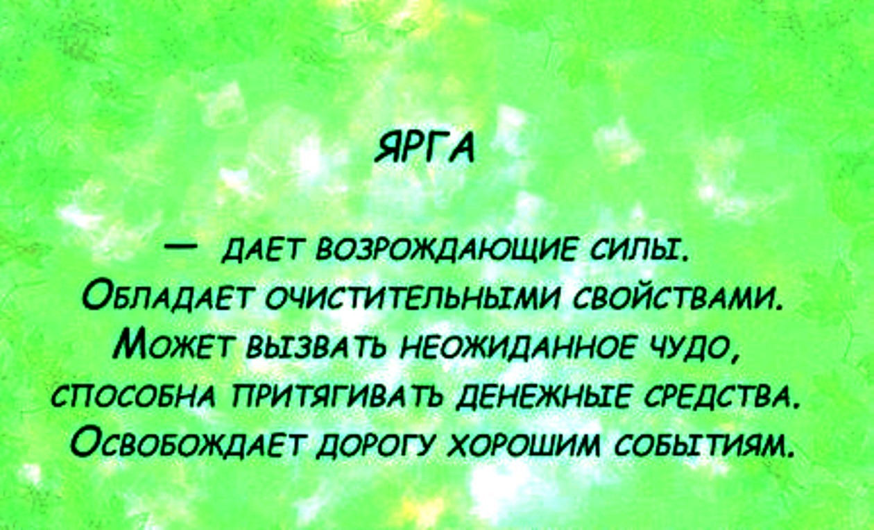 Ягра – является очистительной мантрой, которая будет давать возможности для возрождения силовой энергии. Также может вызывать внезапное чудо нынешних событий в Вашей жизни, притягивать денежные средства. Освобождает путь положительным переменам вашего существования.