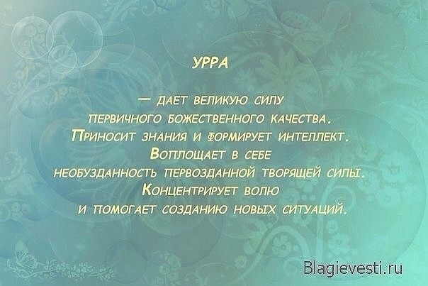 Урро – может дать величайшую силу первоначального божественного качества. Она способна одарить все человечество знаниями, и сформировать повышенный интеллектуальный разум. Так же может воплотить в человеке необузданность первоначальных сил. Воздействует концентрирующее на силу воли и помогает человеку создавать новые различные ситуации.